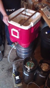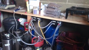 We have upgraded several parts of the brewing process – for the first time ever there is no need to jug from one vessel to the next. As well as this, we have a separate electric HLT for the first time and have hooked up everything before hand. Flavour emphasis for this brew is yeast strain rather than hops and we would like to experiment with adding fruits to flavour the beer.