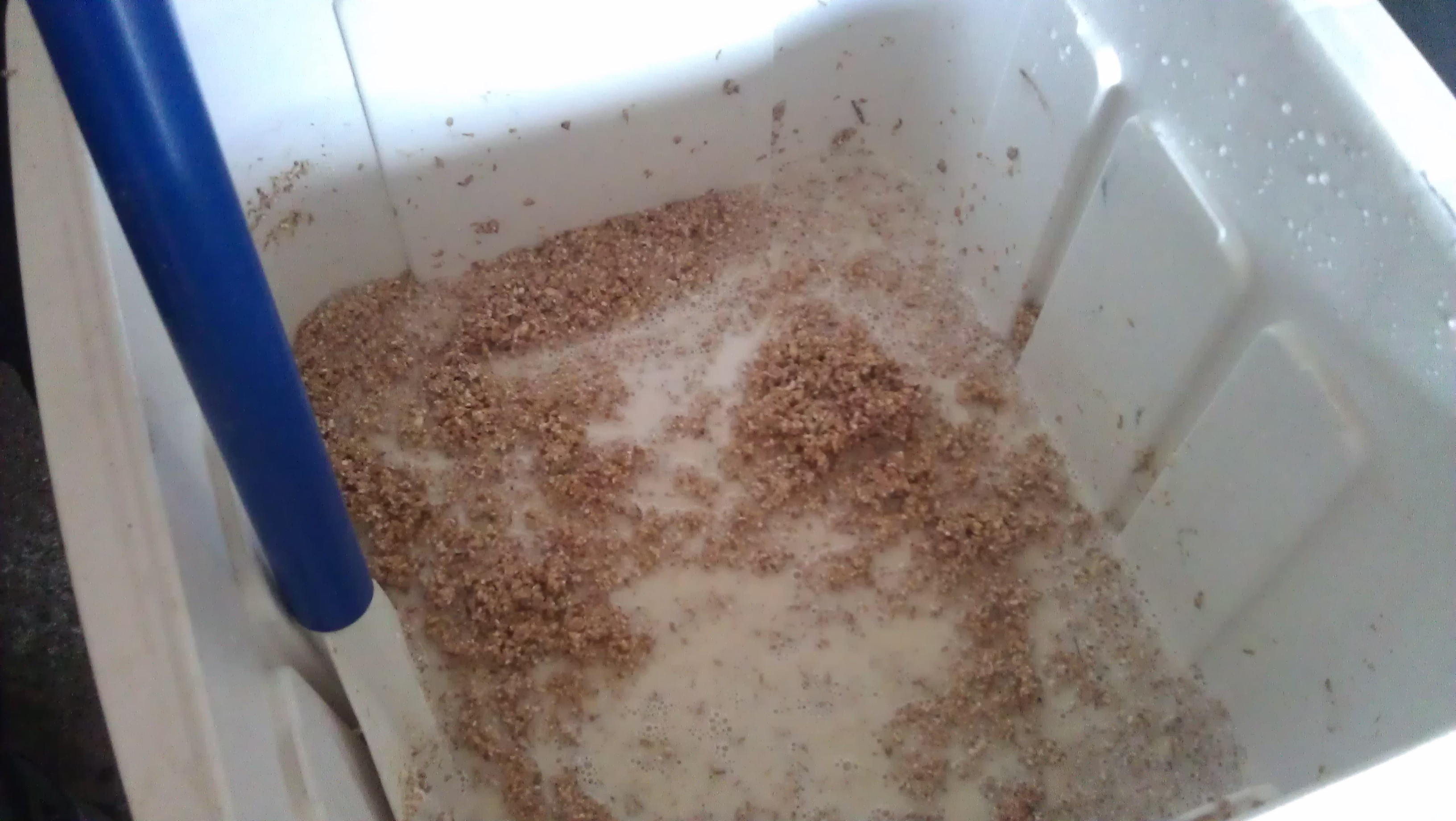 So the plan was a rest at 47ish for 30 min then add enough hot water at the right temperature to get the mash to 65C and end up with a water/grain ratio of 3L/kg.