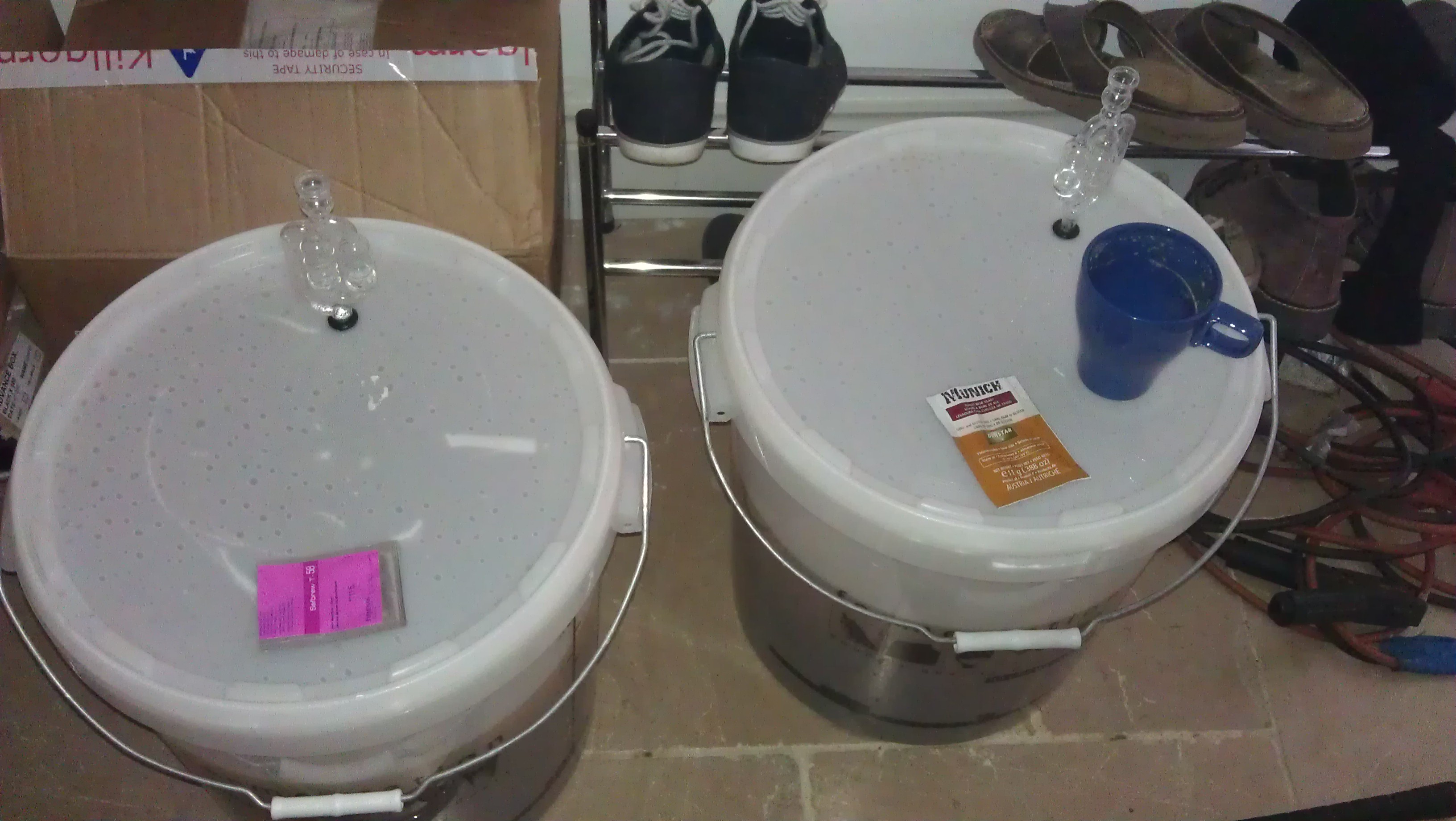We have had some issues with bottle sanitization (or maybe just heavily soiled bottles as James’s new bottles have been fine) so we are trying out some different chemicals. The fermenters were cleaned with Bruclean and James got some starsan to try (though starsan was more for the Corny Kegs than bottles).