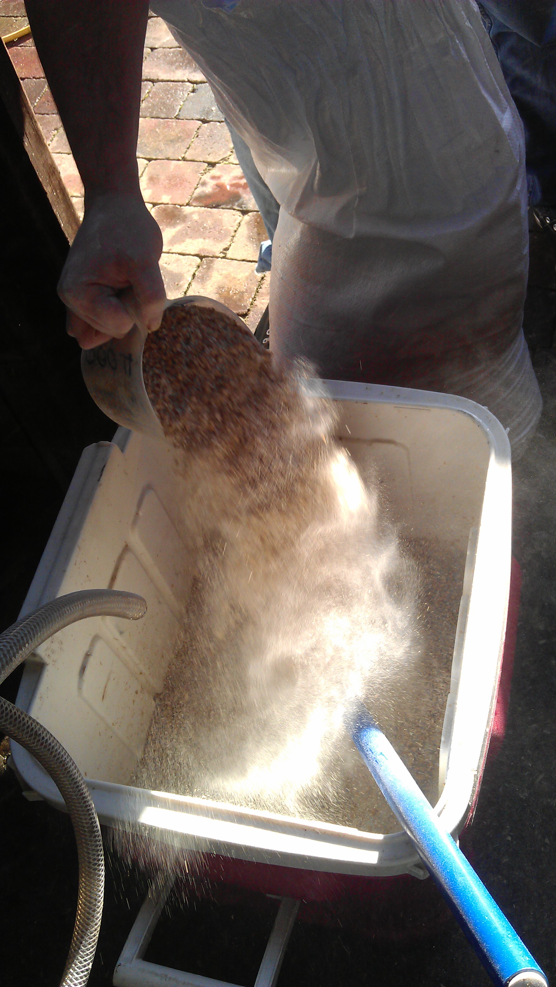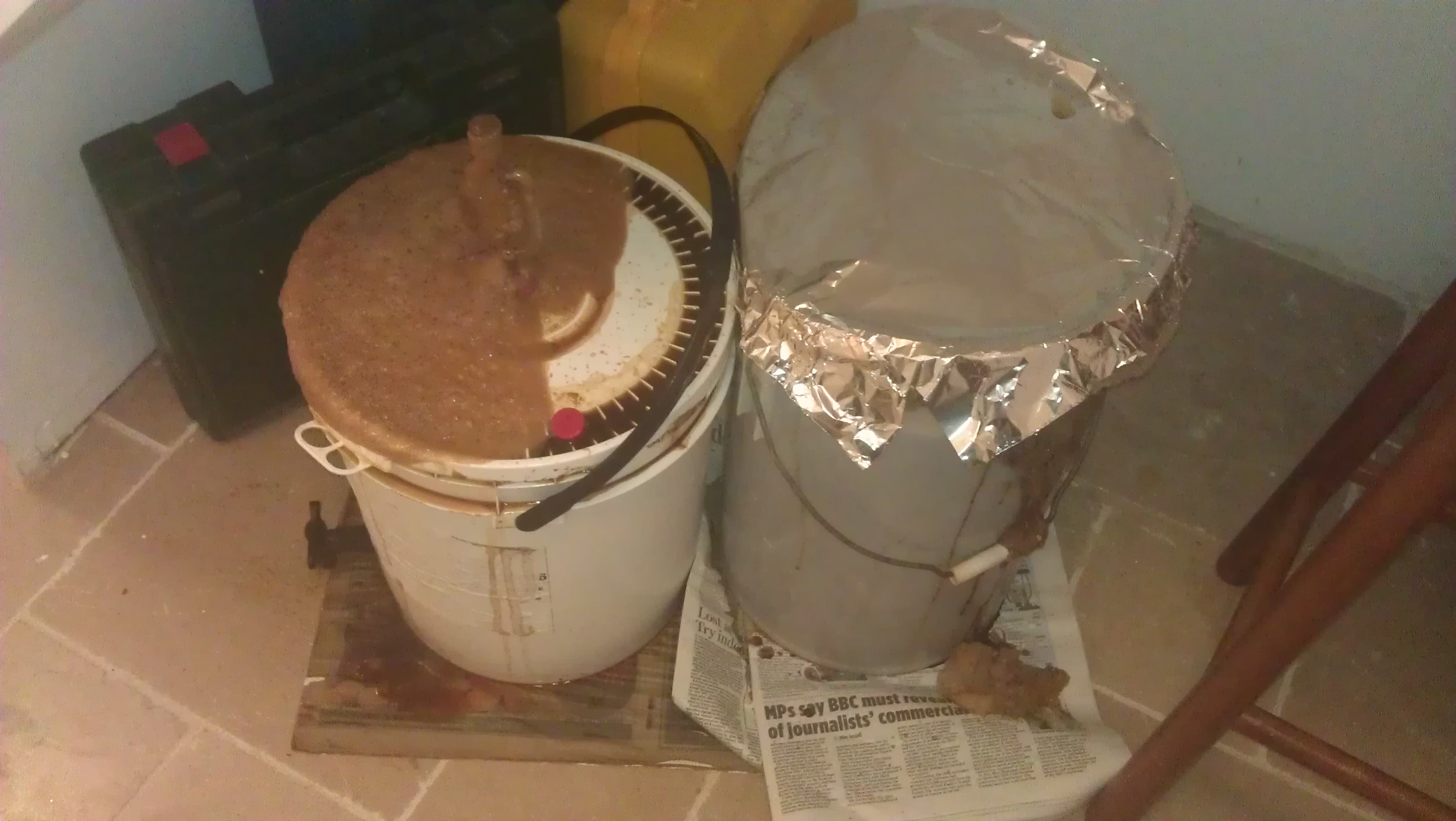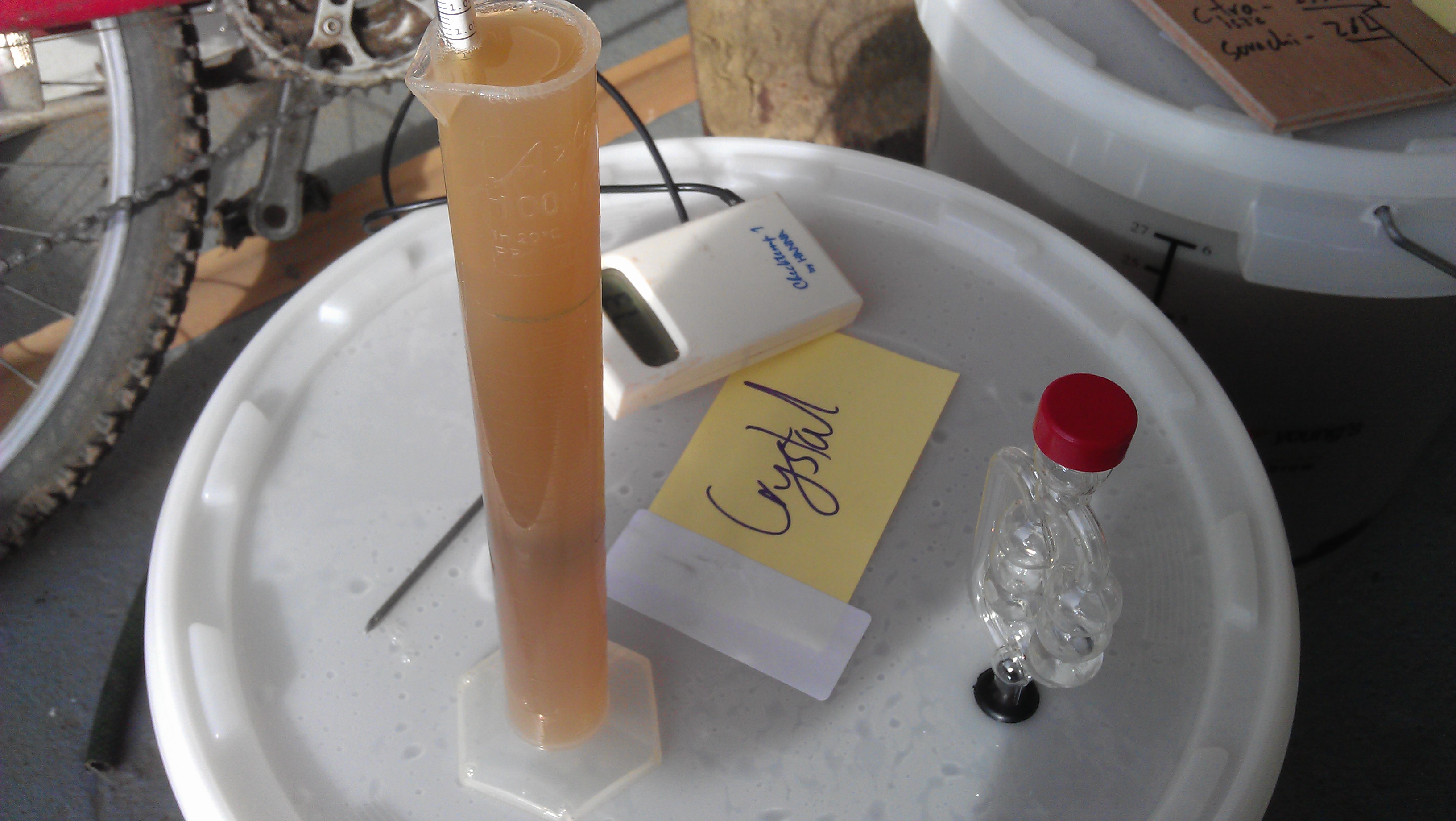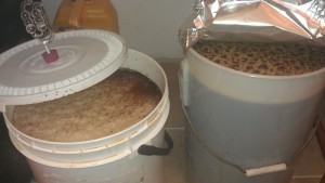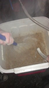 We have had some issues with bottle sanitization (or maybe just heavily soiled bottles as James’s new bottles have been fine) so we are trying out some different chemicals. The fermenters were cleaned with Bruclean and James got some starsan to try (though starsan was more for the Corny Kegs than bottles).