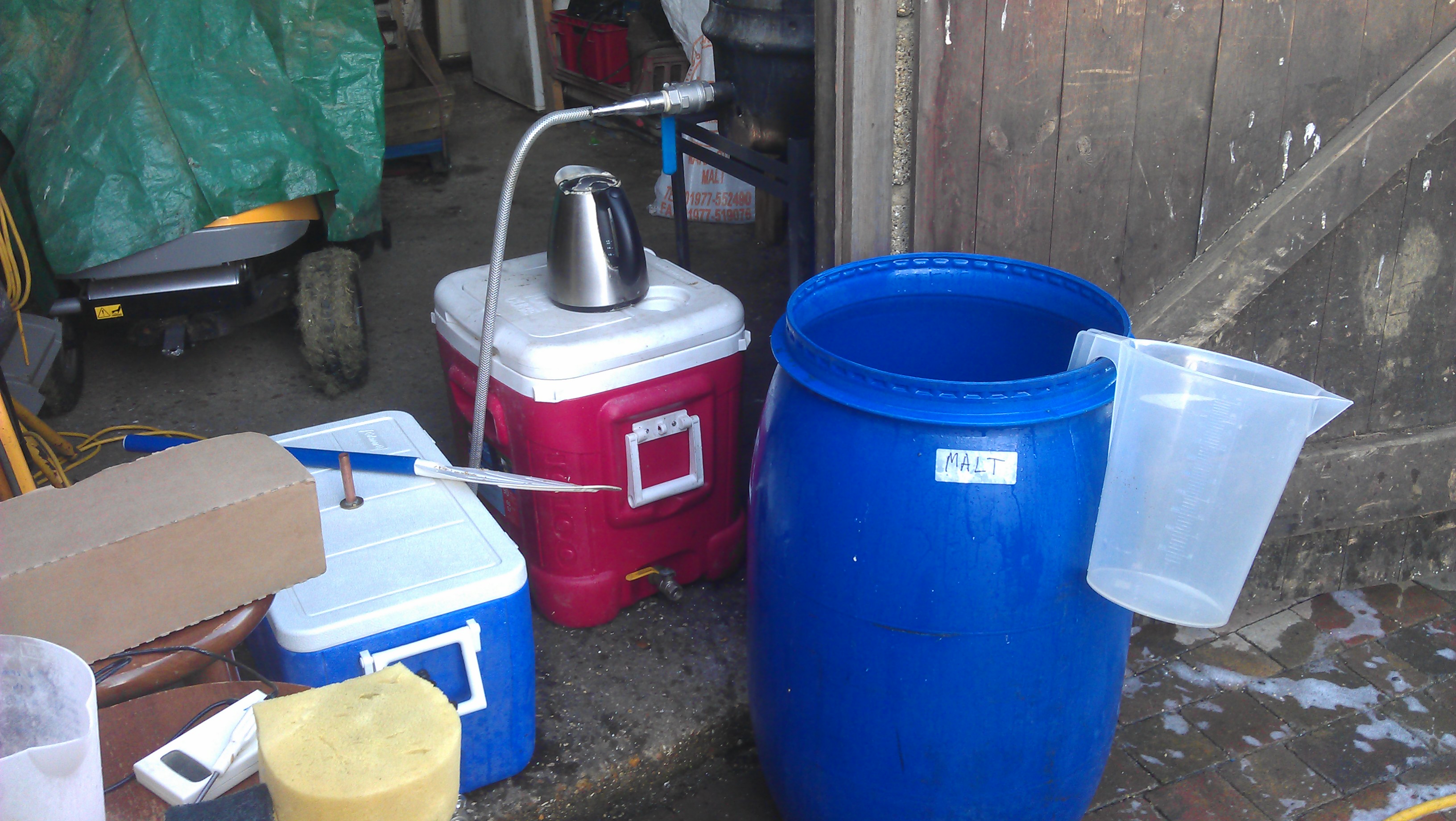So after a break of a month or two of brewing together, BrewJAM are back in business. As an aside, I’ve decided not to post any more of the beers that I (James) have brewed on my own, as they aren’t as experimental or big (or as interesting to read about) as the beers we make as BrewJAM.